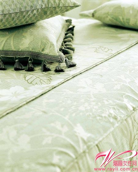 ??? 床品選擇簡約抽象的豆沙綠色圖案,就可以讓整個房間的氛圍停留在初夏的自然氣息里,靠墊上的樹葉圖案和小型花插讓自然氣息更加質樸濃郁。
