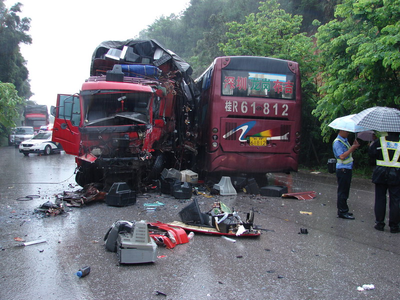 ????藤縣消防大隊到達現(xiàn)場后偵察發(fā)現(xiàn),車牌桂A57370的大貨車,車頭直接撞向一輛(車牌桂R61812)臥鋪車后半部分,事故導致臥鋪車內(nèi)10多名乘客被困。現(xiàn)場狼藉一片,滿地都是碎裂的玻璃和從大貨車上散落的舊電視機和舊電腦顯示器,臥鋪車后半部分嚴重變形,10多名乘客由于受傷無法疏散到安全地方,大貨車駕駛員已被先到現(xiàn)場的交警成功救出。