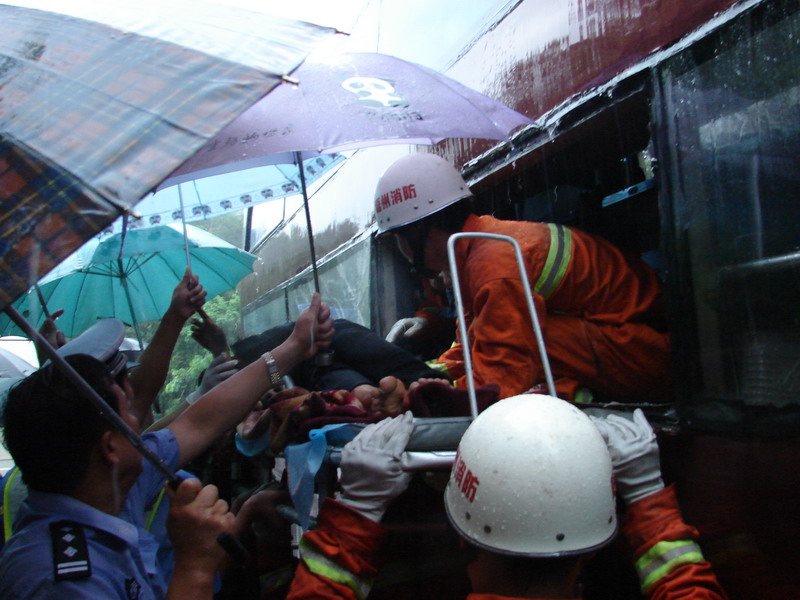 ????根據(jù)現(xiàn)場情況,消防指揮員根據(jù)“救人第一”原則,當即迅速展開救援工作,消防救援人員迅速起動液壓擴張器,3名救援人員深入變型臥鋪車內(nèi),一邊進行擴張救援,一邊安慰被困乘客,另2名消防救官兵一邊擊爛臥鋪車窗玻璃,一邊把臥鋪車內(nèi)的棉被,鋪在臥鋪車窗口上,從臥鋪車窗口轉(zhuǎn)移被困乘客,下面的同志負責接住從臥鋪車內(nèi)疏散出來的乘客。經(jīng)過消防官兵10多分鐘的不懈努力,臥鋪車上的8名乘客很快被全部救出并及時送往趕到現(xiàn)場的120急救車上。