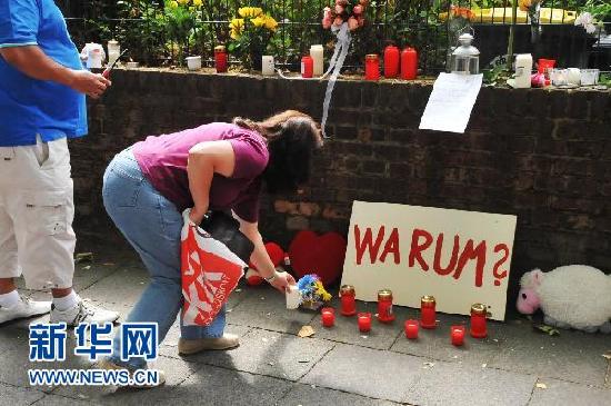 7月25日,在德國杜伊斯堡,當(dāng)?shù)孛癖娫诓忍な录l(fā)生地附近為遇難者獻(xiàn)花。 7月24日,德國杜伊斯堡市在舉行“愛的大游行”電子音樂狂歡節(jié)時(shí)發(fā)生踩踏事件。根據(jù)官方公布的數(shù)據(jù),踩踏事件已造成包括1名女性中國公民在內(nèi)的19人死亡、342人受傷。新華社記者胡小兵攝