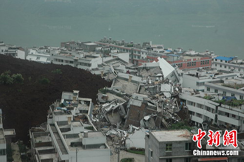 據四川省地勘院專家現場初步勘察認定,此次滑坡系萬工場鎮背后二蠻山山體高位垮塌,垮塌量約10萬立方米。