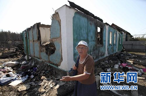 ??? 8月1日,在俄羅斯的沃羅涅日,一名婦女站在被大火燒毀的房屋前。俄羅斯緊急情況部7月31日說,一些最嚴重的森林大火得到控制,但西部地區的大火仍在蔓延。森林大火已經導致至少28人死亡,3500多人被迫撤離,1200多座房屋遭焚毀。