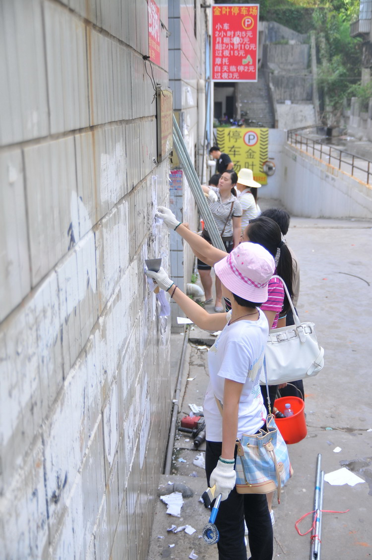 我為城市建設出份力 三百多名志愿者上街清理牛皮癬