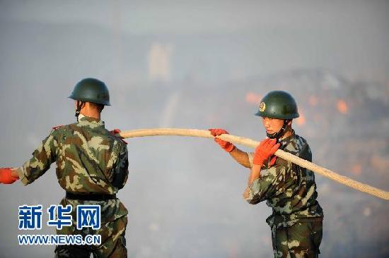 8月16日,消防人員在現(xiàn)場(chǎng)滅火。新華社記者王建威攝