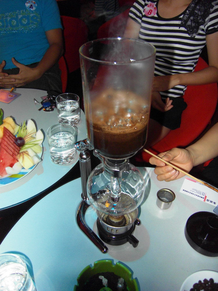 ????當晚的活動在會員親自制作咖啡的環(huán)節(jié)中拉開序幕,因為能親自參與到咖啡的制作中,會員們的熱情一下子就被激發(fā)起來了。開始時,由于大多數(shù)會員都是第一次制作咖啡,一些狀況令人忍俊不禁。有些小組的酒精燈一直被空調(diào)風所吹散,以致咖啡壺內(nèi)的水燒不開。有些小組則把盛放咖啡粉的虹吸壺放入沒燒開的水中,水溫不夠熱而導(dǎo)致虹吸壺不能正常運作。但漸漸地,隨著大家的溝通變得深入,彼此間的合作慢慢變得默契,制作咖啡的過程開始變得輕松起來。一邊有會員巧妙地用餐牌擋住空調(diào)風,讓酒精燈能更好地為開水加熱,一邊則有會員用工具來攪拌咖啡粉,讓咖啡粉能更好地與水融合。