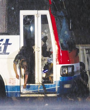 ????經過10余個小時的僵持后,到晚間8點多局勢急轉直下,現場傳出激烈槍響,而嫌犯門多薩被擊斃,尸體懸掛在車門外,有8名人質慘遭劫匪殺害,至少2名人質受傷,4名活著的人質滿臉驚恐地陸續走下車。