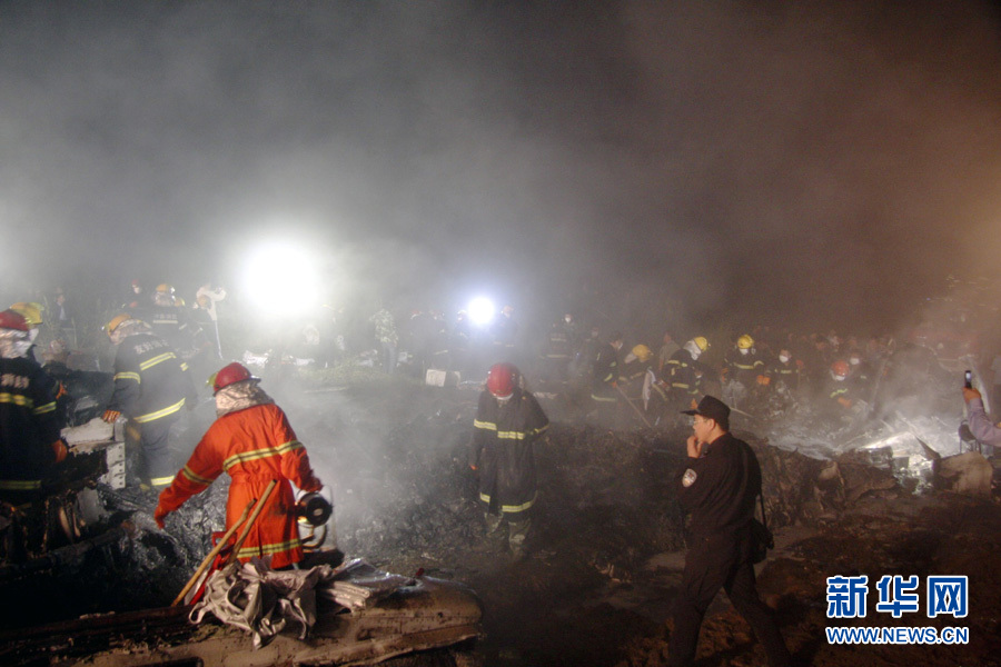2010年8月25日 伊春飛機失事已確認有43人遇難 8月25日凌晨,救援人員在飛機失事現(xiàn)場搜尋幸存者。 24日21時36分左右,一架從哈爾濱飛往伊春的客機在接近伊春機場跑道時失事,這架飛機的航班號為VD8387。據(jù)了解,機上共有旅客91人(其中兒童5人),機組5人,目前已確認43人遇難,另外53名傷者已全部收治在當(dāng)?shù)蒯t(yī)院。新華社發(fā)(李廣福 攝)