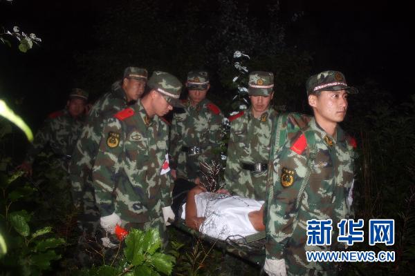 ??? 8月24日晚,伊春森警官兵緊急將一名墜機(jī)事件生還者送醫(yī)救治。根據(jù)最終核對,伊春“8·24”客機(jī)失事已造成42人遇難,54人受傷,其中7人為重傷。傷者目前分布在伊春市內(nèi)4家醫(yī)療機(jī)構(gòu)接受治療。8月24日21時36分,一架經(jīng)哈爾濱飛往伊春的客機(jī)在伊春林都機(jī)場附近失事;機(jī)上共有96人,其中乘客91人,機(jī)組人員5人。新華社發(fā)