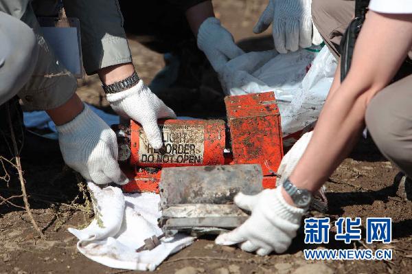 ????8月25日,在飛機失事現場,客機“黑匣子”被找到。 8月24日21時36分左右,一架編號為VD8387的河南航空公司飛機在接近伊春機場跑道時失事。機上共有旅客91人(其中兒童5人),機組5人。新華社記者 邢廣利 攝
