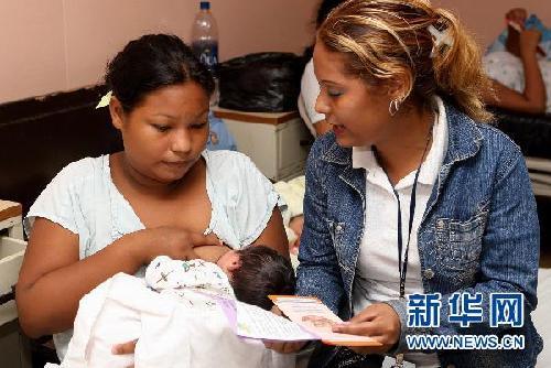 資料圖 一位母親響應號召,為嬰兒進行母乳喂養。新華社發(塞薩爾·佩雷斯攝)