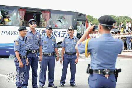 香港《明報》消息,香港康泰旅行團日前在馬尼拉遭槍手脅持逾11個小時,最后在菲律賓無能警察的營救下,造成8死7傷慘劇。事后,菲警在面對世界輿論指摘的情況下,竟沒半點悔疚,更在出事旅游巴前、臉帶笑容地拍照留念。昨日不少圈中人看見這數張令人發指的照片后都勃然大怒,紛紛透過微博予以痛罵!