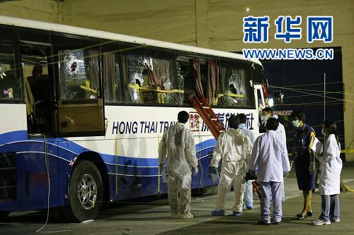 ????一輛載有21名香港游客的觀光大客車23日在馬尼拉被一名遭解雇菲律賓警察劫持。事件發生后,中國政府高度重視,立即向菲方提出交涉,要求菲方在確保人質安全的前提下,全力營救。中國駐菲大使館一直與菲方就此保持溝通。菲警方當晚實施解救行動,擊斃劫匪。香港游客在這一事件中有8人遇難、2人重傷、5人輕傷。