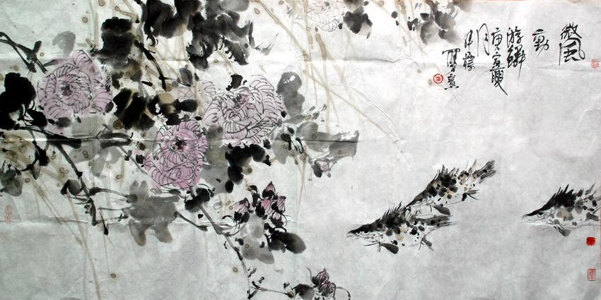 《微風(fēng)動(dòng)游鱗》(中國畫)