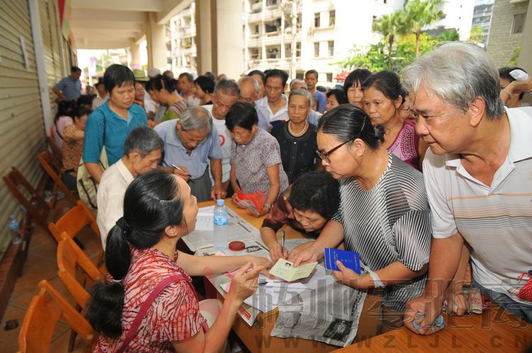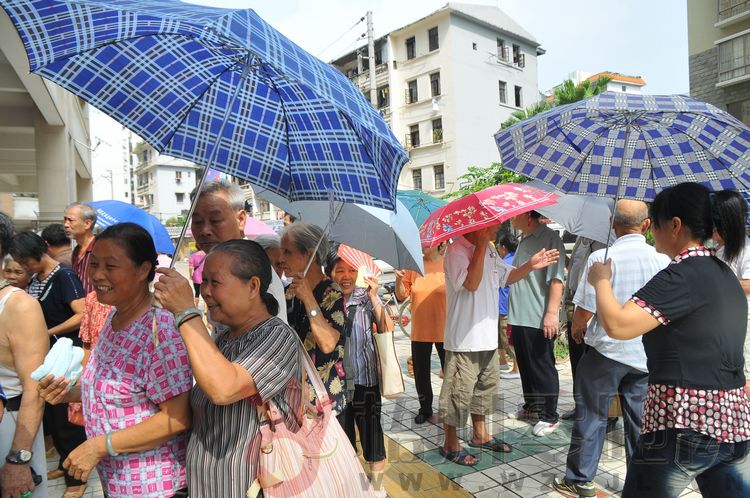 ????7日當天是發放月餅票的第一天,早上便有一大批的退休人員來到了發放點排隊等候。雖然天氣較為炎熱,排在騎樓外人們還要打傘遮陰,但是老人們領到了月餅票后還是十分高興。據了解,7日當天東暉公司大約發放了3000多張月餅票。