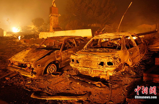 2010年9月9日,美國舊金山國際機場附近一處住宅區發生大火。圖/人民圖片