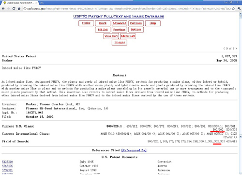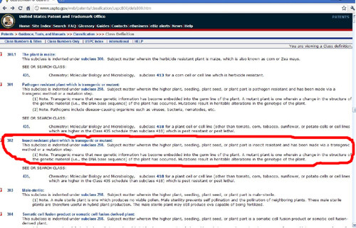 美國專利法規(guī)條款規(guī)定800/302為轉(zhuǎn)基因農(nóng)作物類別。
