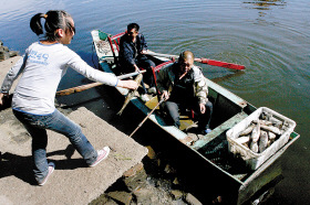 附近的居民都在幫助撈死魚 本報記者 王強 攝