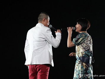 ●現(xiàn)場(chǎng)演繹:鳳凰傳奇是一個(gè)活力十足的演唱組合,他們一出場(chǎng)就帶給觀眾一種歡快的節(jié)慶氛圍。曾毅一條紅色的褲子非常顯眼,玲花則身穿一條素色連衣裙,二人通過《自由飛翔》,將動(dòng)感的音樂傳給每一個(gè)人。而他倆的配合也相當(dāng)默契,一人唱歌的時(shí)候,另一人和著音樂起舞,并不時(shí)向觀眾揮手致意。