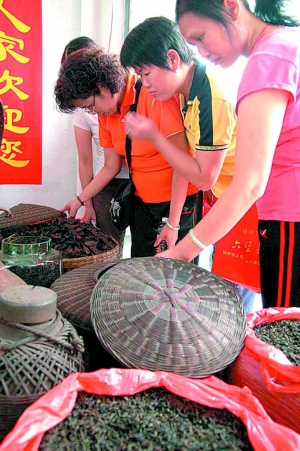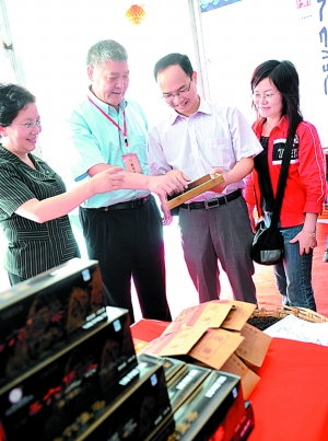 在茶博會上,茶商們巧出新意,紛紛展出自己的特色茶以吸引人們的眼球,一些陳年六堡茶備受茶愛好者和市民的喜愛。在湖南安化黑茶展位里,長約1.5米、直徑0.2米左右的圓柱體千兩花卷茶吸引了眾多圍觀者。該展位負責人說,千兩花卷茶有“世界茶王”之稱,而此次他們還帶來了花磚茶、一品茯磚、“十二生肖”等湖南特色茶。在隨緣六堡茶展位里,陳列的陳香老茶多以傳統的竹簍、竹籃包裝,雖然看似簡陋,但其古樸之風又十分引人關注。“這么醇香的好茶,貴點也值得買。”市民黃洪在品上一杯陳年六堡茶后,立即選購了自己喜歡的品種。南寧古鼎茶集團總經理梁志海說,六堡茶耐收藏,愈陳愈好,品六堡茶,就如品味歷史,品味歲月的滄桑,這也正是六堡茶打動人心的地方。