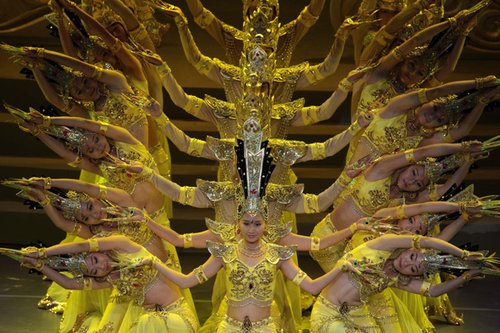 來自中國殘疾人藝術團的演員表演舞蹈《敦煌情韻》中的“千手觀音”