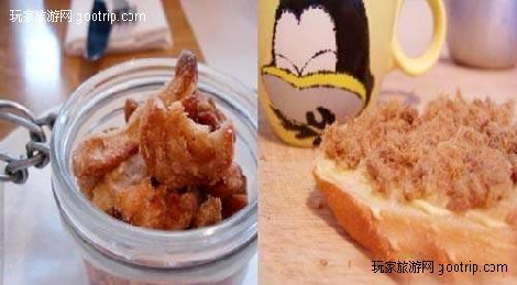 把豬皮曬干之后,再放到鍋里油炸,味道只有你嘗過才知道。通常配合香料加在三明治上面。