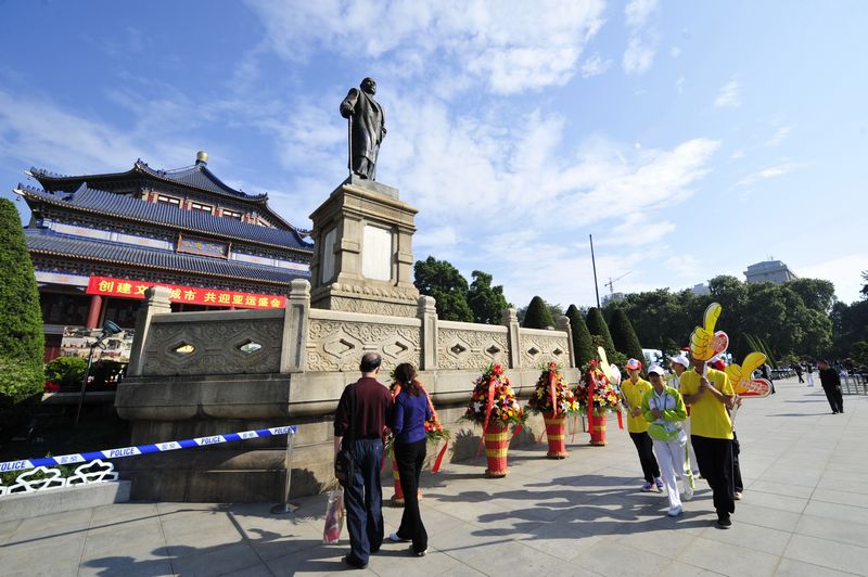 11月12日上午9點(diǎn)左右,市民、游客來(lái)到中山紀(jì)念堂參觀游覽,11月12日是偉大的民主革命先行者孫中山誕辰144周年紀(jì)念日。當(dāng)日,第十六屆亞洲運(yùn)動(dòng)會(huì)即將在廣州開(kāi)幕。新華社記者梁旭攝