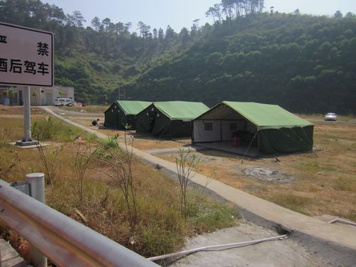 安檢站附近臨時駐扎的軍用帳篷,供安檢人員休息。陳素雅 羅麗思攝