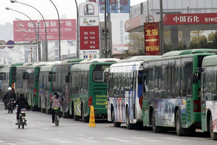 ????11月14日,公交車排隊在南京某加油站等候加油。受“柴油荒”蔓延影響,自身沒有加油站的南京部分公交公司的公交車輛只能與社會車輛一起排隊加油,而在主城區有自備加油站的公交公司的支線公交車輛,在社會加油站無油供應的情況下只能空駛到主城區加油,司機輾轉各加油站排隊加油,以及空駛返城加油,在一定程度上影響到公交運營。
