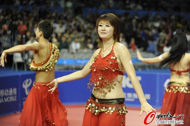 2010年11月16日,2010年廣州亞運會乒乓球女子團體決賽,中國vs新加坡,啦啦隊熱舞助威。