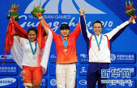 ??? 廣州亞運(yùn)會(huì)官方網(wǎng)站11月17日?qǐng)?bào)道 北京時(shí)間11月17日晚,廣州亞運(yùn)會(huì)女子舉重69公斤級(jí)決賽在東莞體育館進(jìn)行。中國(guó)選手劉春紅以總成績(jī)242公斤,其中抓舉110公斤、挺舉132公斤奪得金牌。印度尼西亞選手辛塔·達(dá)馬里亞尼以總成績(jī)238公斤奪得銀牌。中華臺(tái)北選手王雅珍獲得銅牌,總成績(jī)是233公斤。