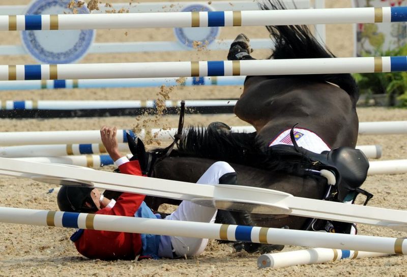 亞運(yùn)馬術(shù)障礙賽 西亞選手“馬失前蹄”