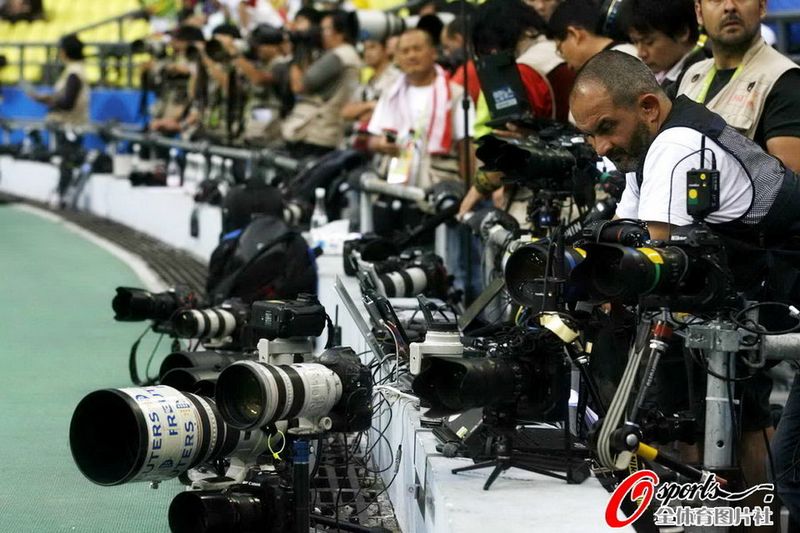 2010年廣州亞運會,攝影記者搶占位置靜候劉翔。