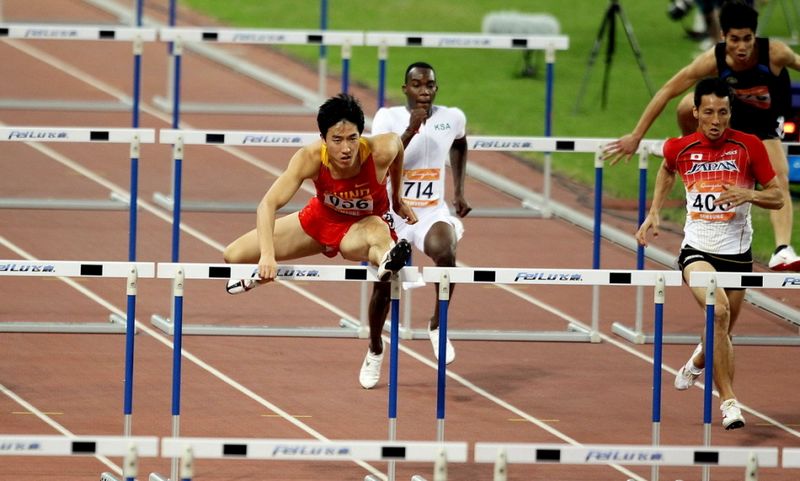 奧體中心場(chǎng)進(jìn)行的2010年廣州亞運(yùn)會(huì)田徑男子110米欄結(jié)束第一輪第一組的較量,前世界紀(jì)錄 創(chuàng)造者、奧運(yùn)會(huì)和世錦賽冠軍劉翔以13秒48獲得小組第一,輕松進(jìn)入決賽。