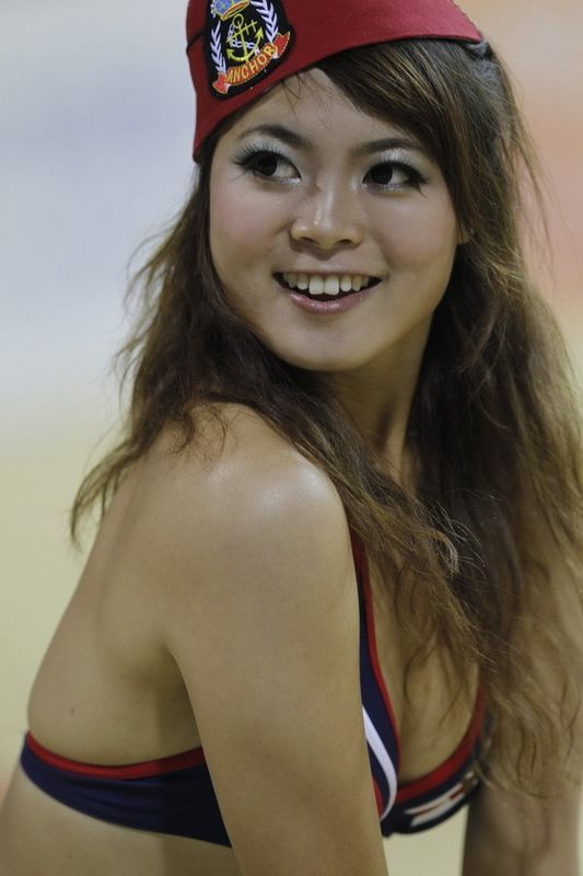 在亞運(yùn)會(huì)賽場上,拉拉隊(duì)的寶貝身穿性感的服裝,表達(dá)對(duì)中國隊(duì)的支持。攝影 陶震宇