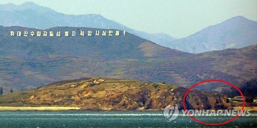 紅色圈處為朝鮮海岸炮隱藏防空洞(圖片來(lái)源韓聯(lián)社)