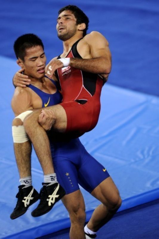 亞運摔跤比賽在廣州華南理工大學體育館進行,伊拉克選手哈馬蒂在與中國選手高峰(藍方)爭奪季軍的比賽中的第一局就不慎扭傷膝蓋,但他仍堅持完比賽。而獲勝后的高峰也不忘將對手輕輕抱起來,送回到教練身邊,令人感動。