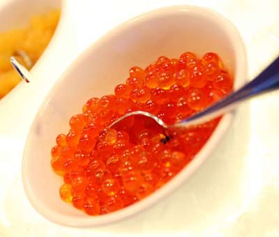 阿拉斯加特產,鮭魚子。粒粒橙紅,晶瑩剔透。一口咬下去即時滿嘴鮭魚的鮮美香潤。