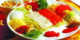 ????新年里,新加坡人則一定要吃“撈起魚生”,它的色彩豐富,味道鮮美,由于象征“風(fēng)生水起”,寄托著人們對來年幸福的希望,有很好的兆頭,因此廣受歡迎。廣州一些粵菜酒樓如漁米之鄉(xiāng)、鵝公村等也有類似的菜式,味道還真不錯哦。