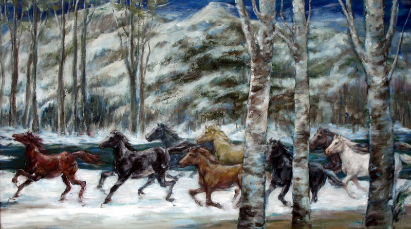 《冬之舞.馬到功成》(油畫)2000×1200(mm) 定價:5800元