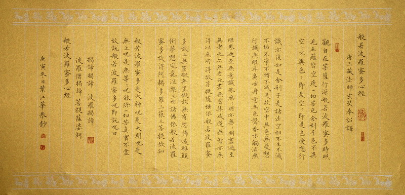 波羅蜜多心經(書法,泥金宣紙)760×390(mm) 定價:600元(已售)