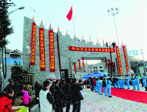 ????經(jīng)過3年的修建,這座仿照古長城建造的臺門和“城墻”于2011年元旦正式完工。落成當(dāng)日,“岙底山莊”舉行了盛大的典禮,全村男女老少包括已搬遷到城里的村民、工作在外的兒子、嫁到外地的女兒,都從四面八方趕回來慶賀。