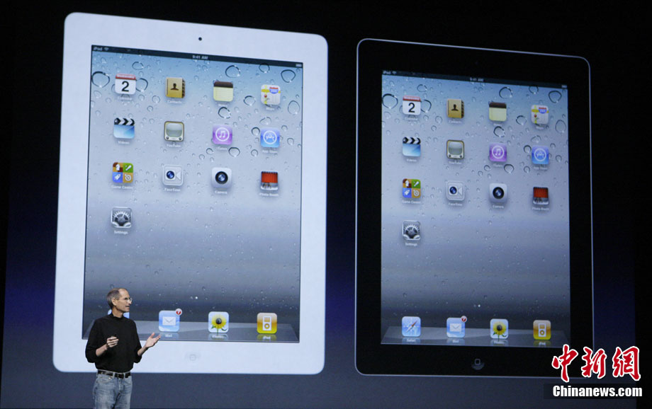 ??? 3月2日,蘋果公司首席執行官史蒂夫·喬布斯在美國舊金山舉行的新產品發布會上介紹iPad 2。當天,美國蘋果公司推出新一代平板電腦iPad 2。