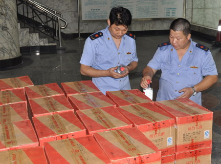 2010年07月05日 近日,在梧州市兩廣市場,梧州市工商局查獲一起銷售假冒白酒案,查扣假冒白酒385箱共4620瓶,案值約2萬元。