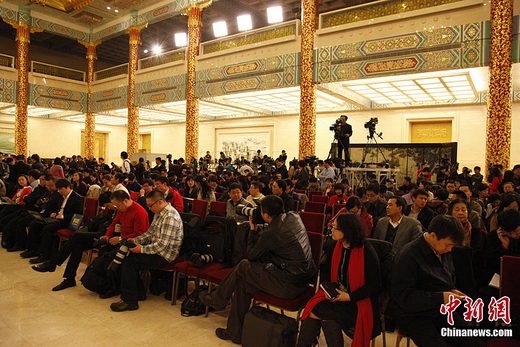 ????3月4日,十一屆全國人大四次會議在人民大會堂三樓金色大廳舉行新聞發(fā)布會,由大會發(fā)言人就會議議程和人大工作相關(guān)的問題回答中外記者的提問。中新網(wǎng)記者 楊磊 攝