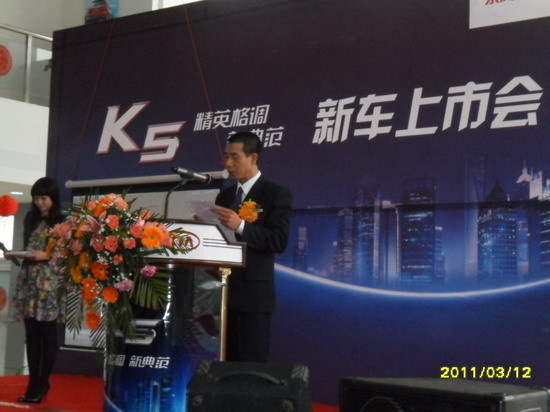 新車上市會上,梧州順楓達(dá)東風(fēng)悅達(dá)起亞4S店總經(jīng)理于澤濤先生向嘉賓推介K5。