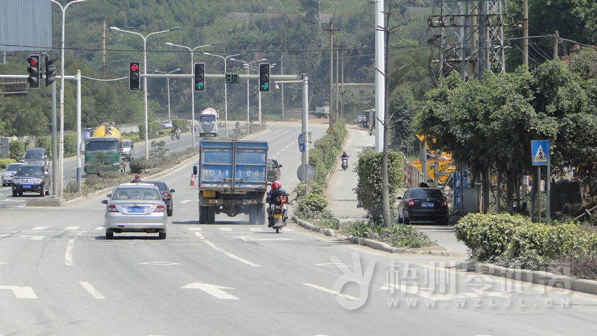 ??? 3月29日,在國道207線蒼梧段松脂廠路口,梧州往龍圩方向的右車道,地面標線為直行加右轉,信號燈為右轉,兩者不統一。