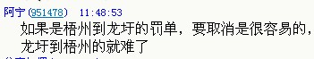 寧哥?交警方面怎么答復 阿寧(951478)?11:27:11? 現在的情況是這樣,如果是梧州往龍圩方向放行時因走左車道直行違章的,可以取消罰款。 阿寧(951478)?11:27:35? 也就是說,存在有爭議的車道,可以免于處罰 冰雁(461945275)?11:27:55? 嗯 往事如煙(49905107)?11:27:58? 那網上什么時候取消呢?? 往事如煙(49905107)?11:28:06? 掛出來的罰單 被黑(117995726)?11:28:20? 群里的朋友都這樣的情況嗎 冰雁(461945275)?11:28:32? 要自己去取消吧 白云深處(244862835)?11:28:45? 阿寧(951478)??11:27:11 現在的情況是這樣,如果是梧州往龍圩方向放行時因走左車道直行違章的,可以取消罰款。----右道呢?