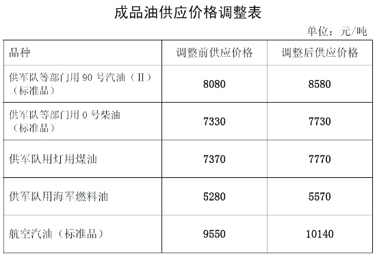 ????(一)成品油生產經營企業供軍隊及新疆生產建設兵團、國家儲備用汽、柴油(標準品,下同)供應價格每噸分別提高500元和400元,調整后的汽、柴油供應價格分別為每噸8580元和7730元。其他成品油價格相應調整。調整后的成品油標準品價格見附表一。非標準品價格由成品油生產經營企業按照國家規定的品質比率確定。