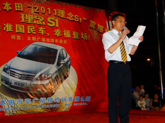 廣汽本田廣梧店總經理王文輝先生向廣大市民推介理念S1。 韋世寧 攝