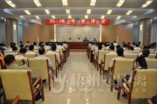 ??? 4月29日下午,梧州市人民政府隆重召開2011年全市消防工作會議。市消防支隊陳運強支隊長通報了今年1-4月全市火災形勢以及近期消防工作開展情況。今年1月至4月,全市共發生火災26起,直接財產損失155萬元,無人員傷亡。從2011年4月20日至9月30日,我市開始對建筑消防設施進行專項治理工作。